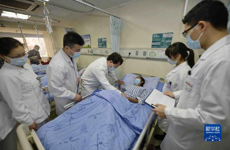 12月3日,在四川大學(xué)華西醫(yī)院,王文濤(中)在病房?jī)?nèi)查看包蟲(chóng)病患者病情。新華社記者 劉坤 攝