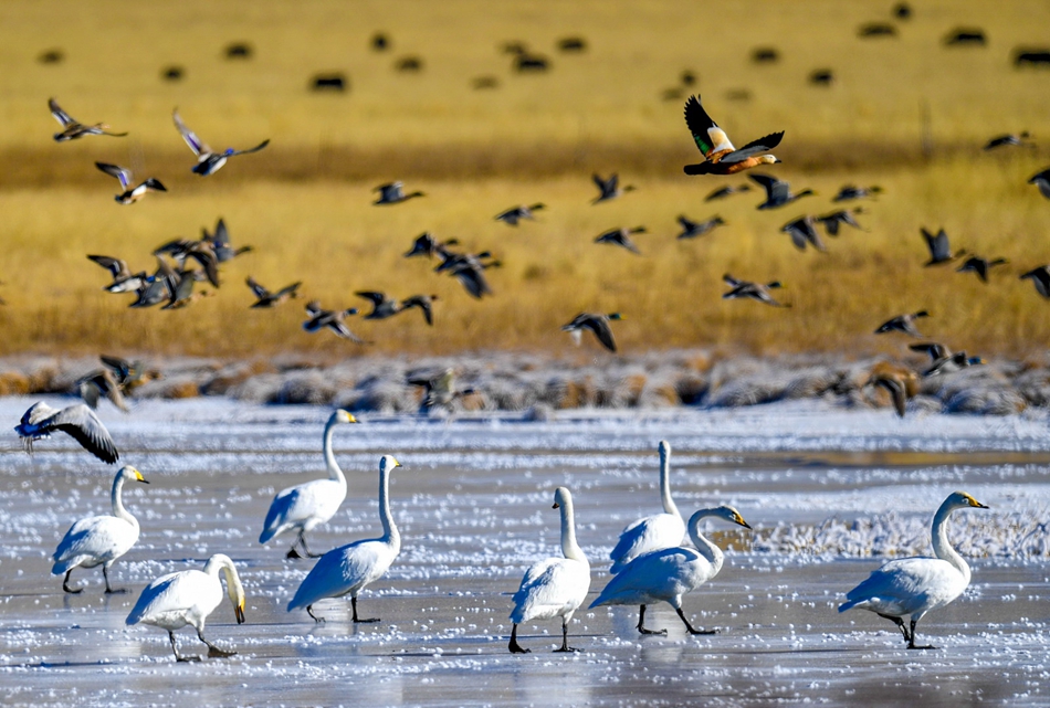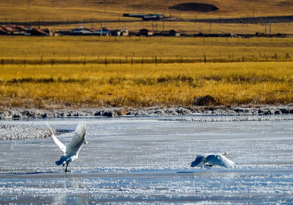 “碌曲縣依托“黃補(bǔ)”區(qū)項(xiàng)目先后將湖邊的尕海鎮(zhèn)、鎮(zhèn)屬機(jī)關(guān)單位遷移出了核心區(qū),將居住在尕海湖邊的牧民群眾實(shí)施了整村搬遷,有效減緩了對侯鳥的干擾?!备拭C尕海則岔國家級(jí)自然保護(hù)區(qū)管護(hù)中心尕海保護(hù)站站長香毛吉說,隨著尕海濕地生態(tài)的持續(xù)改善,為大天鵝提供了穩(wěn)定的越冬水位、豐富的濕地食物,在尕海境內(nèi)越冬的大天鵝數(shù)量逐年增加。