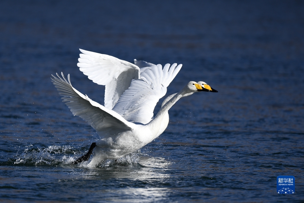 大天鵝飛抵柴達(dá)木盆地都蘭湖國(guó)家濕地公園“越冬”