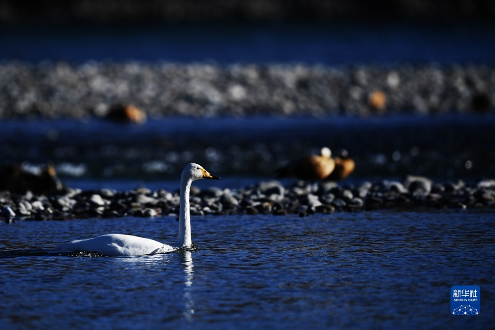 近日,前來(lái)越冬的近百只天鵝在青海省海南藏族自治州貴德縣境內(nèi)的黃河濕地覓食休憩,為冬日黃河帶來(lái)勃勃生機(jī)。近年來(lái),青海省加大力度保護(hù)治理境內(nèi)黃河流域,改善當(dāng)?shù)厣鷳B(tài)環(huán)境,為越冬候鳥(niǎo)提供良好棲息地。