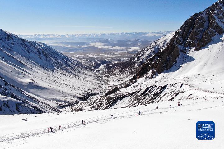 1月1日,登山愛(ài)好者攀登崗什卡雪峰(無(wú)人機(jī)照片)。