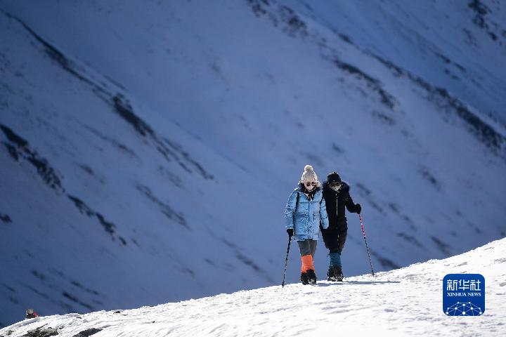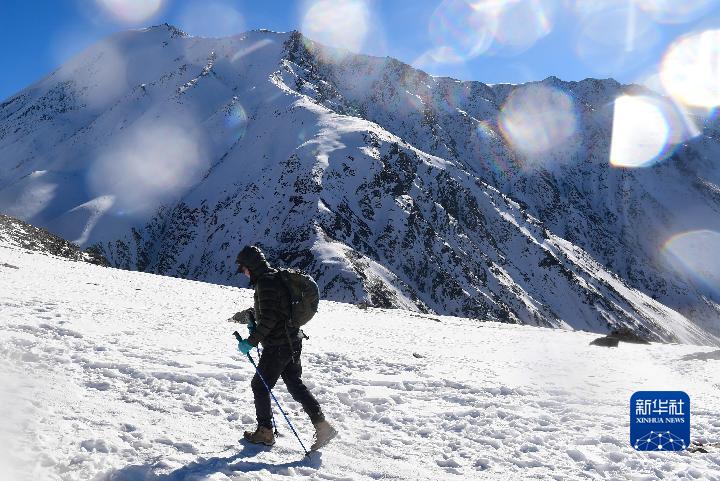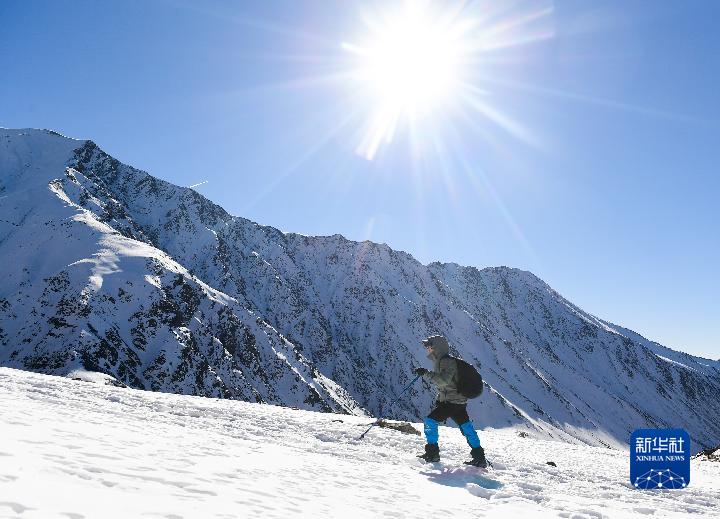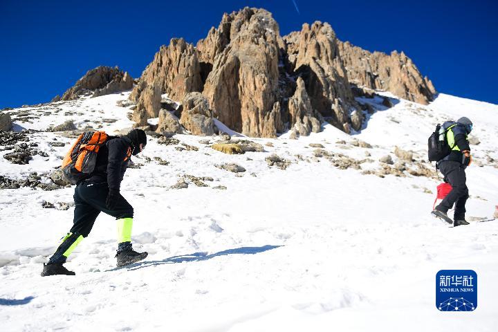 1月1日,登山愛(ài)好者攀登崗什卡雪峰。新華社記者 張龍 攝