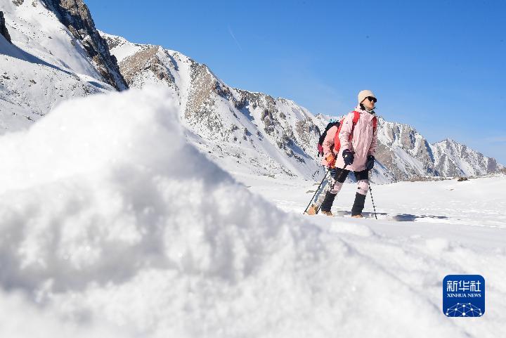當(dāng)日,在青海省海北藏族自治州門源回族自治縣,登山愛(ài)好者們攀登崗什卡雪峰,在山巔和雪原中度過(guò)新年第一天。