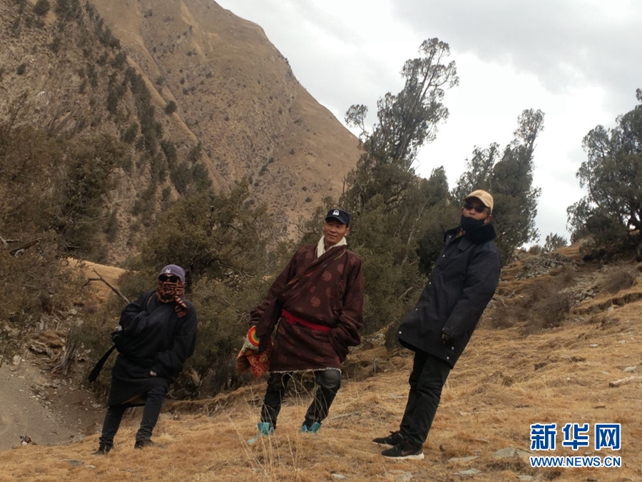 圖為桑杰加(左)和同事記錄巡查結(jié)果?!●R銘言 攝