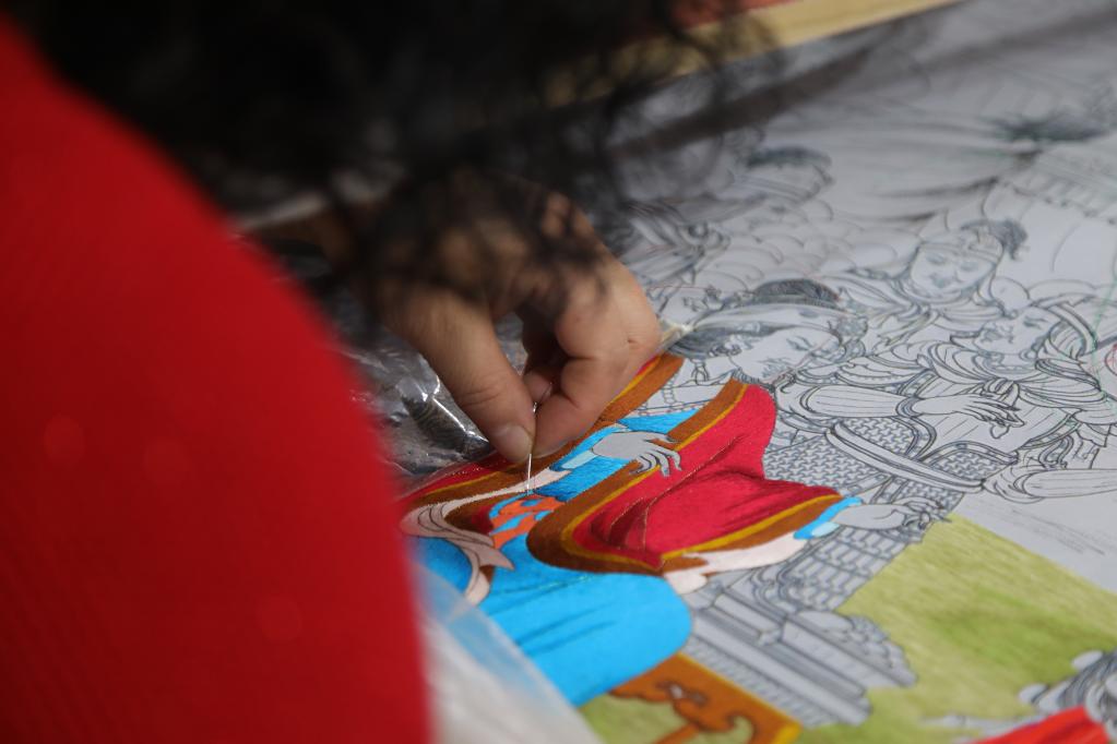 拉毛葉忠介紹,這些年,當?shù)卣?jīng)常組織民間藝人去考察學習湘繡、蘇繡、粵繡、蜀繡等中國四大繡的針法,讓藏繡技藝推陳出新,更加凸顯出藏繡自身蘊含的特色。