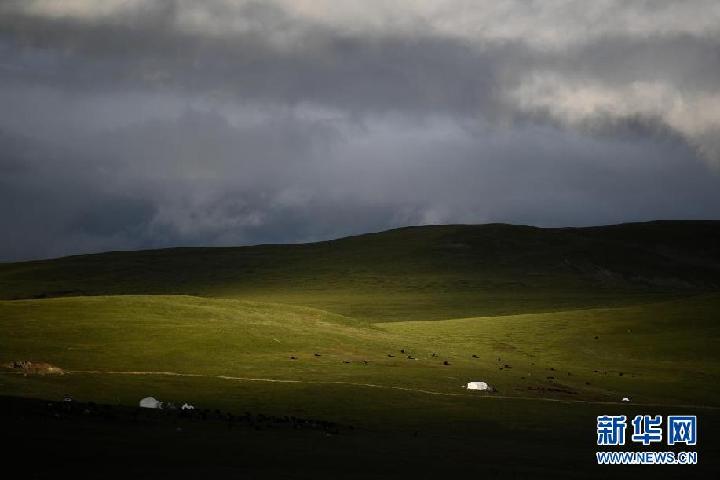 2021年8月3日,在青海省果洛藏族自治州瑪沁縣當(dāng)洛鄉(xiāng)貢龍村拍攝的夏季草場(chǎng)。新華社記者 張龍 攝