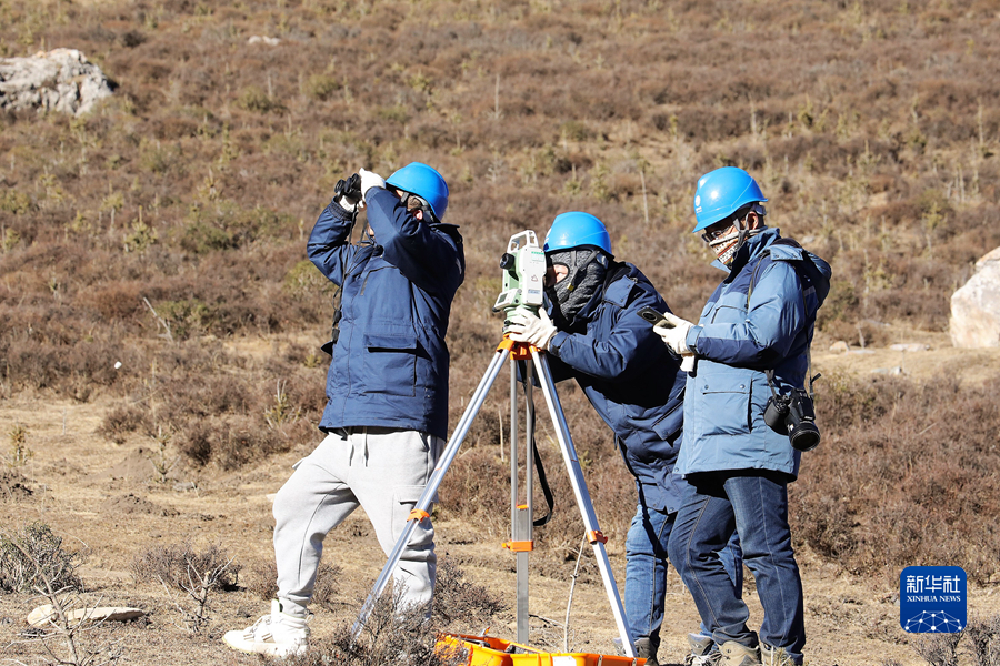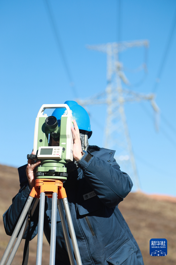 1月19日,國(guó)家電網(wǎng)青海省電力公司檢修公司輸電檢修中心專(zhuān)業(yè)班組成員使用經(jīng)緯儀進(jìn)行線路測(cè)量工作。新華社記者 趙玉和 攝