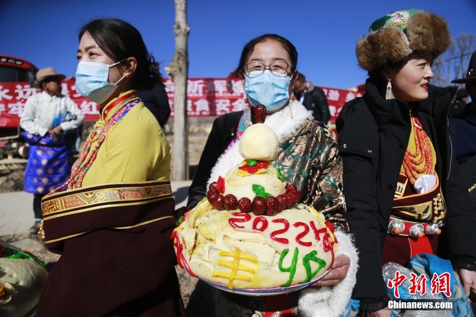2月24日,青海省海南藏族自治州貴德縣拉西瓦鎮(zhèn)十個(gè)村的藏族民眾身著盛裝,端著寓意風(fēng)調(diào)雨順、五谷豐登的饃饃(藏語(yǔ)稱(chēng)之為“彤糕”)來(lái)到田間,參加傳統(tǒng)春耕儀式。儀式上,民眾撒種祈福,再現(xiàn)當(dāng)?shù)剞r(nóng)耕從人力耕作到人畜耕作,再到機(jī)械耕作的發(fā)展過(guò)程,并用“二牛抬杠”的傳統(tǒng)方式開(kāi)啟新春第一犁,寄托對(duì)國(guó)泰民安、五谷豐登的美好期望。
