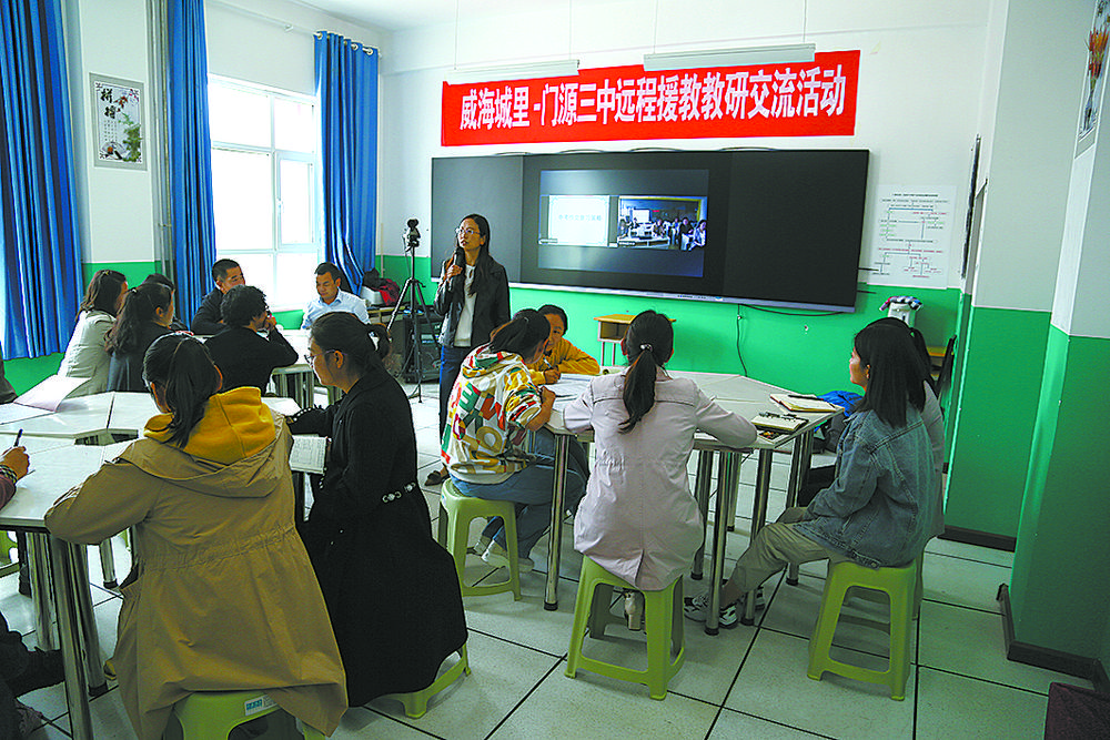 2019年9月,山東援青在門(mén)源縣啟動(dòng)“威海—門(mén)源遠(yuǎn)程智慧援教工程”試點(diǎn)。目前,山東援青累計(jì)投入資金870余萬(wàn)元,基本實(shí)現(xiàn)了山東四市對(duì)海北四縣中小學(xué)遠(yuǎn)程智慧援教全覆蓋,推動(dòng)山東與海北結(jié)對(duì)學(xué)校老師之間的同步備課、同步聽(tīng)課、同步評(píng)課、同步研課,先后開(kāi)展活動(dòng)800余次,兩地6000多名教師參與,山東老師不到高原也能參與援青支教,使海北學(xué)子不離家鄉(xiāng)也能享受優(yōu)質(zhì)教育。