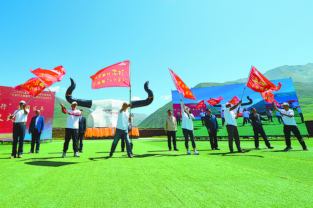 “二十萬(wàn)人游海北”暨援青文旅聯(lián)盟“千車(chē)萬(wàn)人青海行”首發(fā)團(tuán)啟動(dòng)儀式。本版圖片均由山東援青和青海日?qǐng)?bào)記者 尹耀增 攝