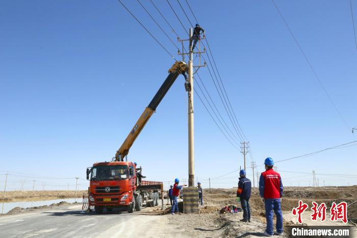 圖為青海海西供電公司員工在10千伏區(qū)七路15號桿更換桿塔組件。 國網(wǎng)海西供電公司供圖