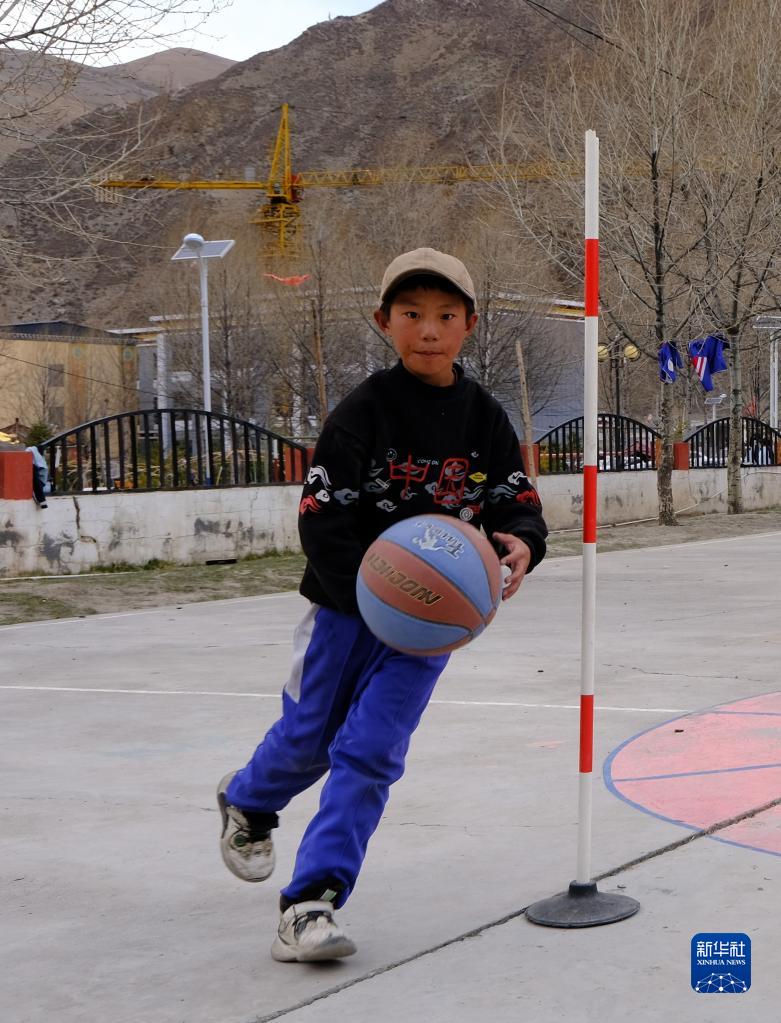 4月18日,稱多縣文樂中心寄校籃球社團的學生在活動。新華社記者 央秀達珍 攝