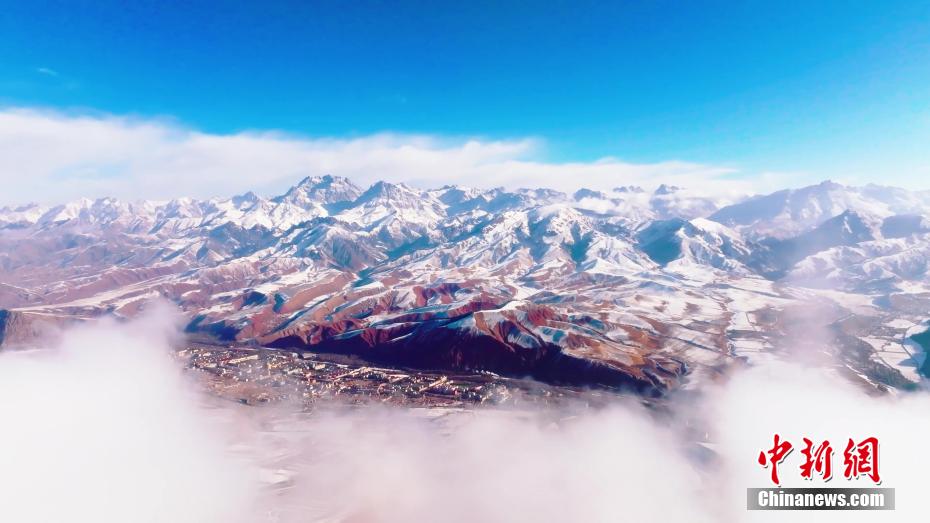 一場春雪過后,青海省海北藏族自治州祁連山國家公園青海片區(qū)群山被白雪覆蓋,云霧繚繞,金色的草場、潔白的羊群和蔚藍的天空相映成趣,美不勝收。[詳細]