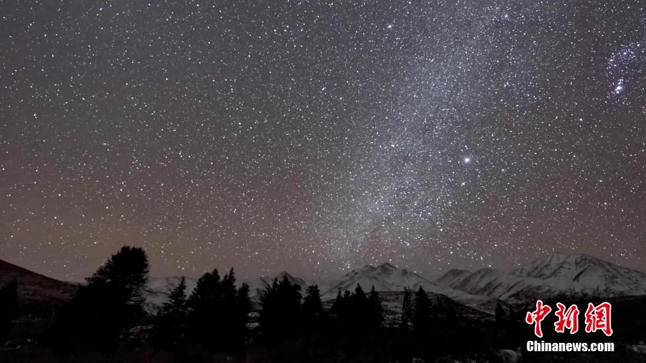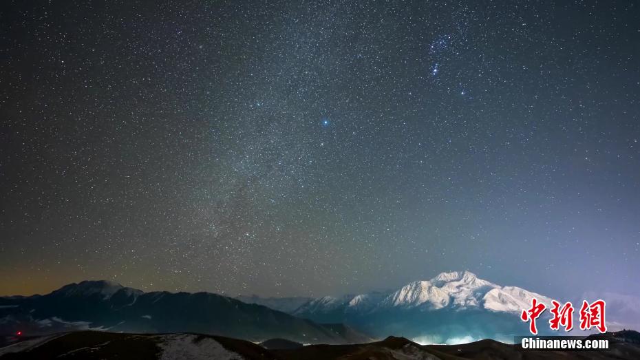 近日,攝影愛好者在位于祁連山腹地的青海省海北藏族自治州祁連縣,用延時攝像的方式記錄下鮮有人知的春日祁連山壯麗星河和絕美晨曦。祁連山海拔在4000米至6000米之間,海拔4000米以上的地方,稱為雪線,一般而言,冰天雪地,萬物絕跡。雪線之上,夜晚布滿繁星的銀河是祁連山最美奇觀之一。清晨,銀白的曙光漸顯緋紅,朝霞映在當?shù)孛癖娦闹小吧裆健迸P纳缴希吧裆健蓖鹑缟倌昕±蕡砸?。馬志原 攝