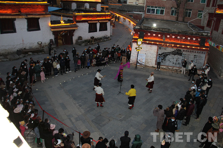 中國西藏網(wǎng)訊 “不分你我彼此,相聚共舞此曲……”長袖翻飛,弦樂聲聲,5月1日晚,四川省甘孜藏族自治州理塘縣4A級景區(qū)勒通古鎮(zhèn)·千戶藏寨內(nèi),理塘縣格聶弦子協(xié)會、千戶藏寨弦子隊的表演贏得了游客的陣陣喝彩。