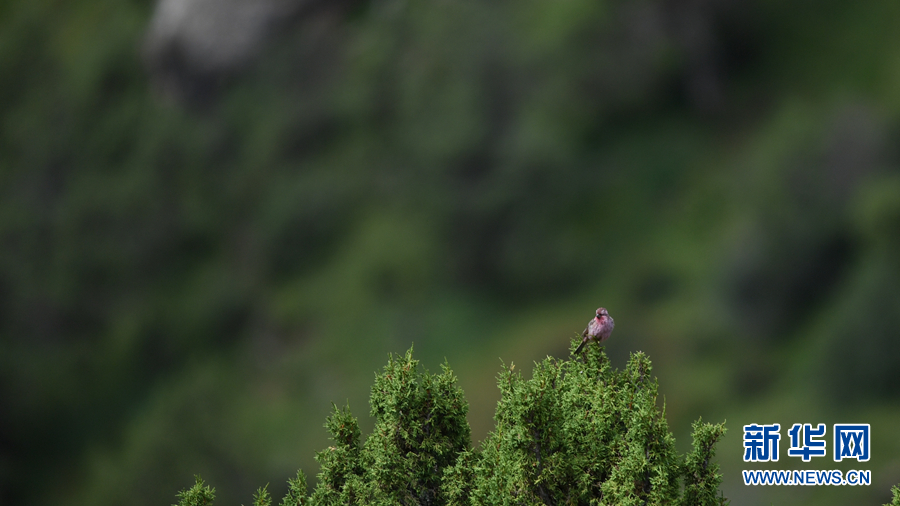 在青海省玉樹藏族自治州囊謙縣境內(nèi)拍攝到的曙紅朱雀(雌)。