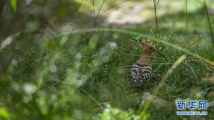 在青海省玉樹藏族自治州通天河畔勒巴溝拍攝到的戴勝。新華網(wǎng) 潘彬彬 攝
