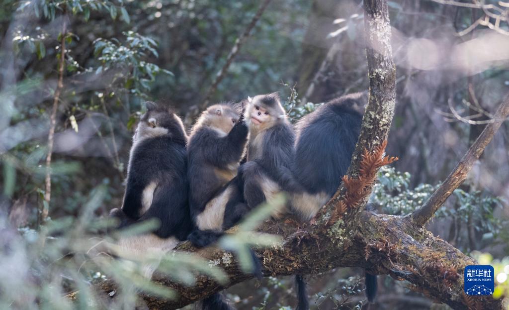 圖為3月13日在云南白馬雪山國家級自然保護區(qū)內(nèi)拍攝的滇金絲猴。新華社記者王冠森 攝