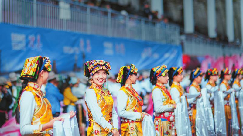 嘉絨姑娘身著盛裝參加嘉絨鍋莊文化旅游節(jié)。馬德暉 攝