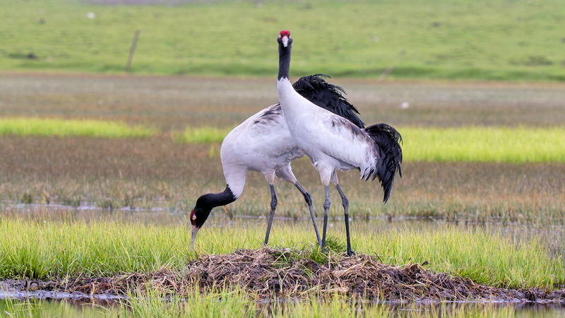 黑頸鶴高山和夏雨夫婦正在筑巢。張景元 攝