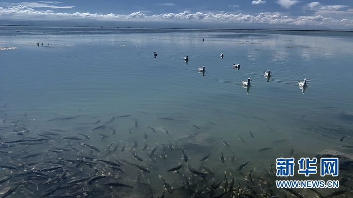 魚鳥共生的青海湖。新華社記者 李琳海 攝