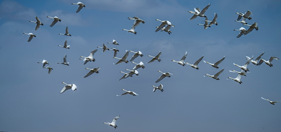 青海黃河濕地迎來(lái)越冬天鵝