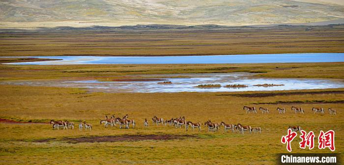 “其中黃河源頭扎陵湖、鄂陵湖湖泊面積與2015年比較分別增大74.6平方公里和117.4平方公里,黃河源‘千湖奇觀’再現(xiàn)。同時,黃河源頭水源涵養(yǎng)能力不斷提升,湖泊數(shù)量由原來的4077個增加到5849個,濕地面積增加104平方公里。草地綜合植被蓋度達56.3%。生物多樣性不斷豐富,野生動物種群由原來的17目29科79種增加到21目46科106種,尤其是藏野驢、藏原羚等動物數(shù)量明顯增加?!备蕦W斌說。