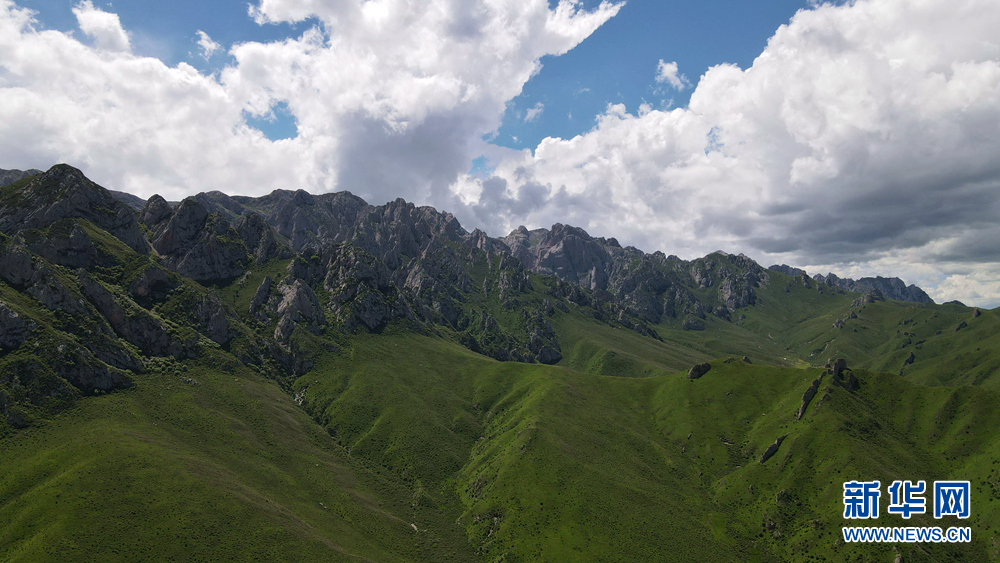 時值盛夏,青海省黃南藏族自治州河南蒙古族自治縣境內(nèi)的青海洮河源濕地公園,奇峰聳立、水草豐美。藍天白云之下,高山與草原相映,風光旖旎、如詩如畫。