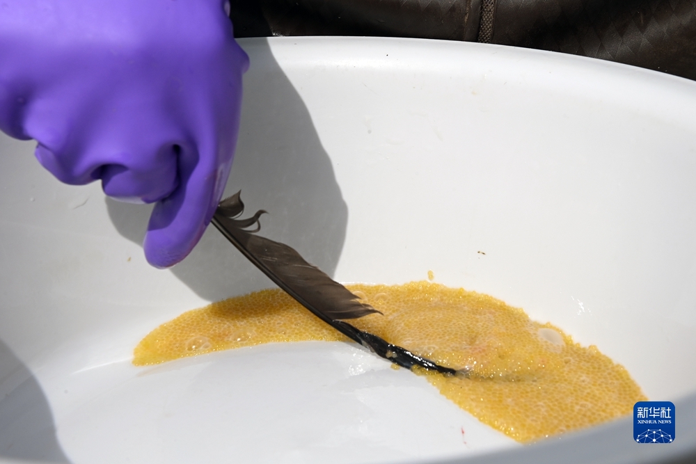 6月29日,在青海湖裸鯉沙柳河泉吉河增殖實(shí)驗(yàn)站,工作人員把收集的湟魚(yú)受精卵放入孵化盒。新華社記者 范培珅 攝