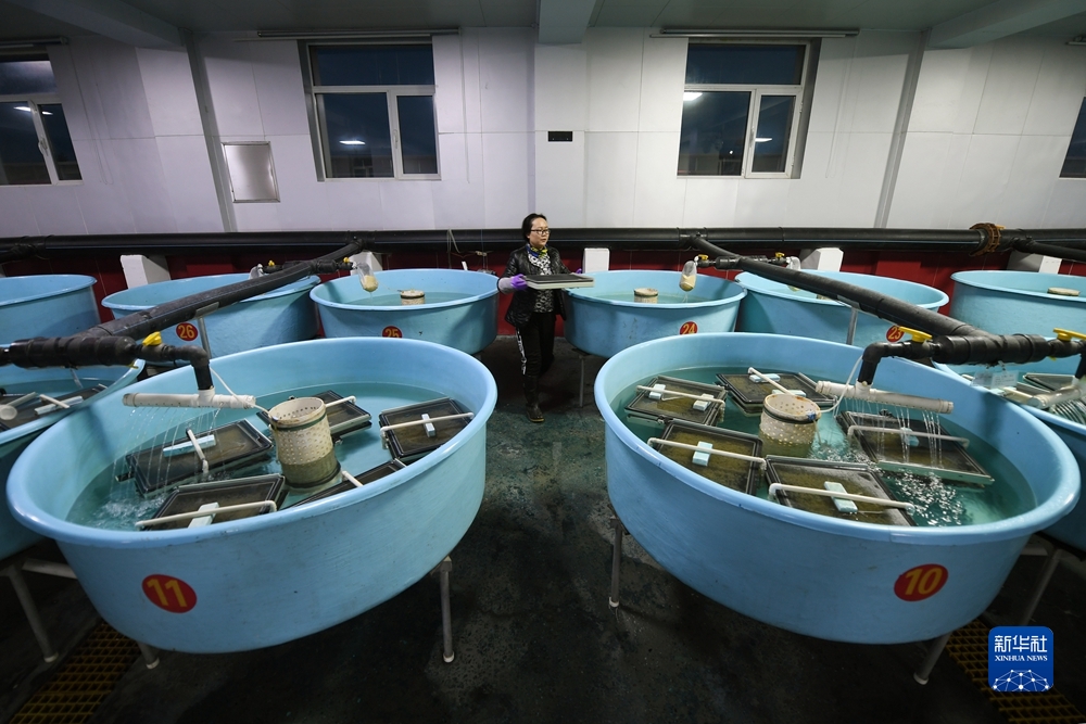 6月29日,在青海湖裸鯉沙柳河泉吉河增殖實(shí)驗(yàn)站,工作人員查看圓形破膜缸中湟魚(yú)受精卵破膜情況。新華社記者 范培珅 攝