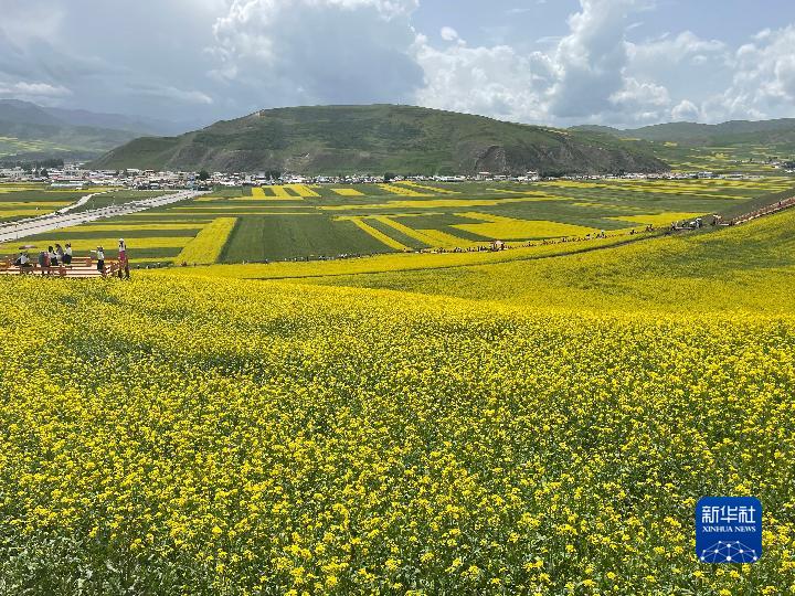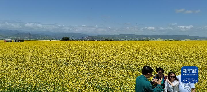 盛夏時節(jié),從青海省會西寧出發(fā),沿張汶高速公路驅(qū)車1個多小時,就進入門源回族自治縣境內(nèi)。油菜花鋪展出“金色花海”,天地間融為一幅濃墨重彩的天然畫卷。