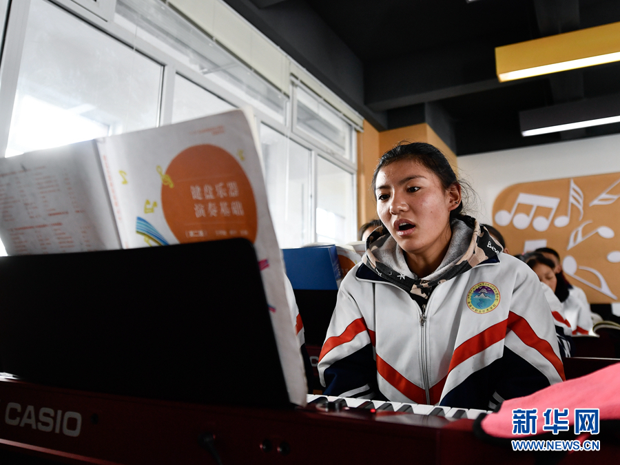 在果洛藏族自治州職業(yè)技術(shù)學校,2020級學前教育專業(yè)學生楊央在上音樂課。(資料圖)新華社記者 張龍 攝