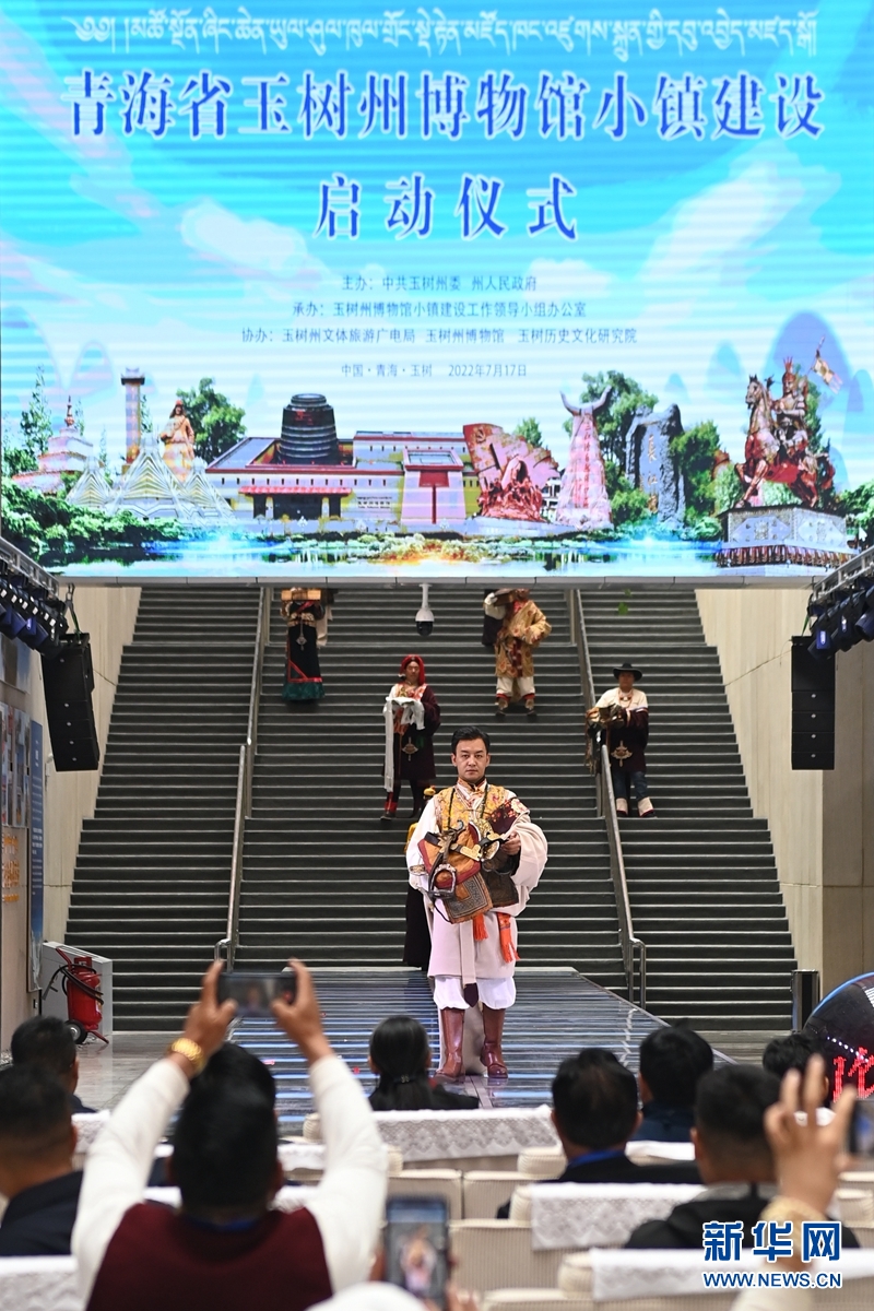 這是17日拍攝的青海省玉樹(shù)州博物館小鎮(zhèn)建設(shè)啟動(dòng)儀式現(xiàn)場(chǎng),模特正在展示博物館藏品。新華社記者 范培珅攝