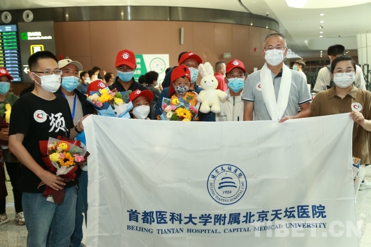 圖為7月24日即將前往首都醫(yī)科大學附屬北京天壇醫(yī)院的患兒、家屬及院方代表
