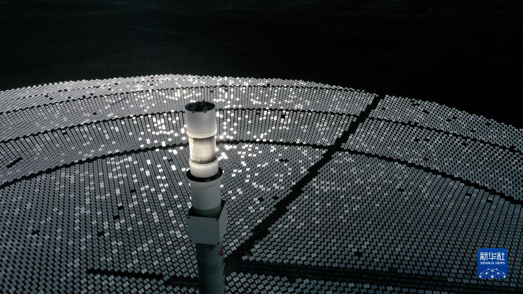 這是位于青海省海南藏族自治州共和縣光伏產(chǎn)業(yè)園內(nèi)一處塔式光熱發(fā)電項目(2021年3月3日攝,無人機照片)。新華社記者 張宏祥 攝