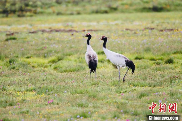 圖為瑪可河國家濕地公園內(nèi)的黑頸鶴。圖片來源:班瑪縣委宣傳部