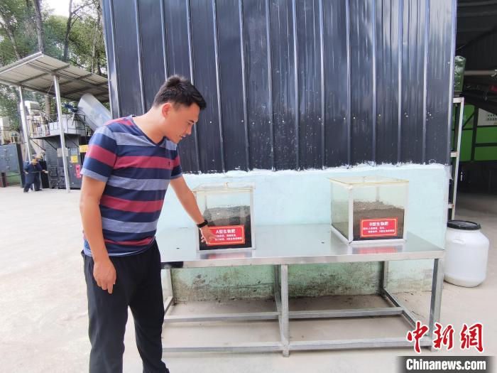 圖為張家溝村駐村第一書記劉軍介紹垃圾生物肥。祁增蓓 攝