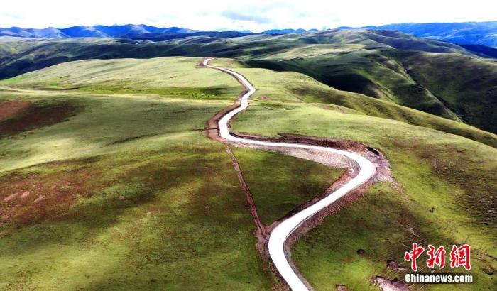 “天路搖曳在群山上,彎彎山路連著圓圓的月亮……”16日,四川省阿壩藏族羌族自治州壤塘縣上杜柯鄉(xiāng)的牧民蘭確哼著歌騎著摩托車行駛在上藍天路上,33歲的他載著父親來遠山夏牧場尋兩只走丟的小牛,“以前騎馬來回大半天的路,現(xiàn)在半小時就搞定?!?/p>