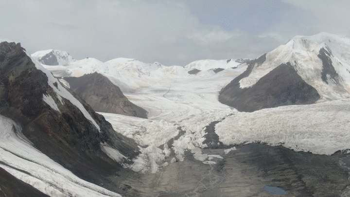抬頭,是皚皚白雪冰川;腳邊,是冰雪融水奔流。厚厚冰蓋嵌入山谷中,冰川融水隨著河谷順勢而下,匯入長江源水系。