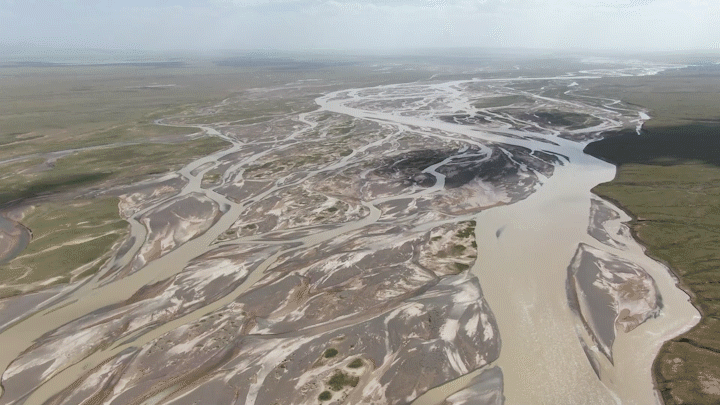 周銀軍說,在青藏高原上,江源河床下多是凍土,河水很難向下侵蝕。加上兩岸沒有山體形成自然約束,也不像平原地區(qū)修建堤防、護岸等水利工程,長江源地區(qū)河流水量大、水流快時,河道沖刷以橫向變形為主,因此河床呈現(xiàn)千變?nèi)f化狀態(tài)。