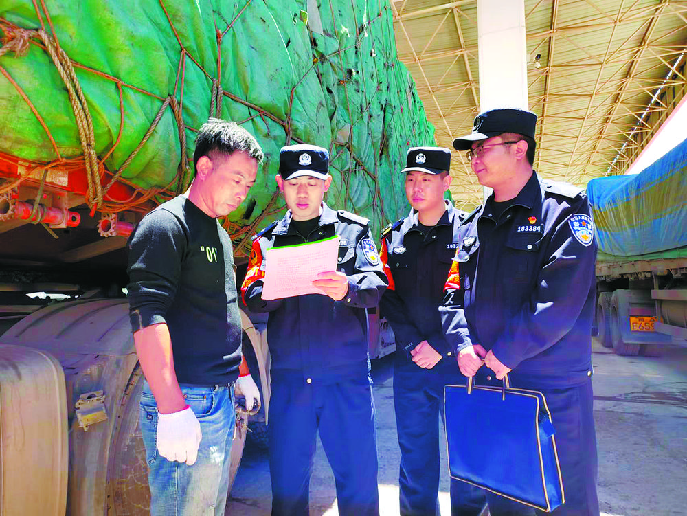 沱沱河站派出所所長沈衛(wèi)平(左二)和民警們一起向客車司機宣傳愛路護路知識。要去如此艱苦的地區(qū)工作,對于自己的父母,沈衛(wèi)平猶豫再三,最終和妻子商議,決定向父母隱瞞自己去沱沱河站派出所工作的事情。[詳細] -