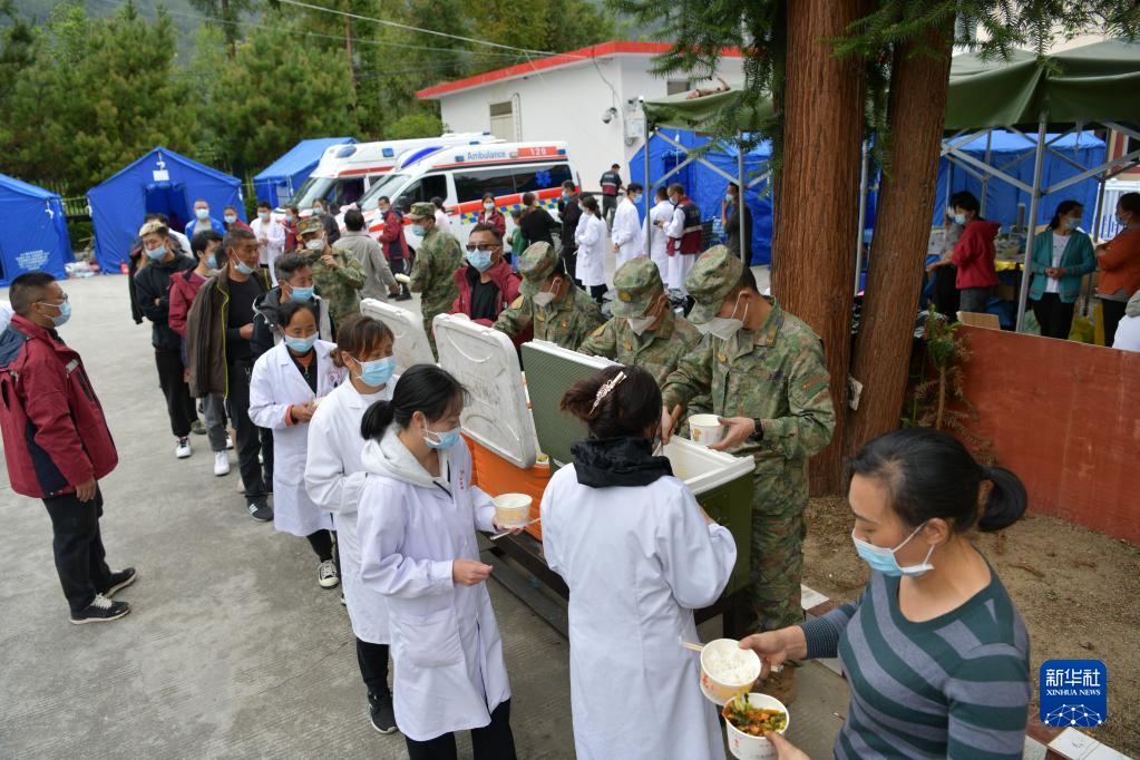 9月6日,西藏軍區(qū)川藏兵站部某大站救援隊抵達瀘定縣磨西鎮(zhèn),開設(shè)臨時熱食供應(yīng)站為救援人員和受災(zāi)群眾提供保障。新華社發(fā)(任云 攝)