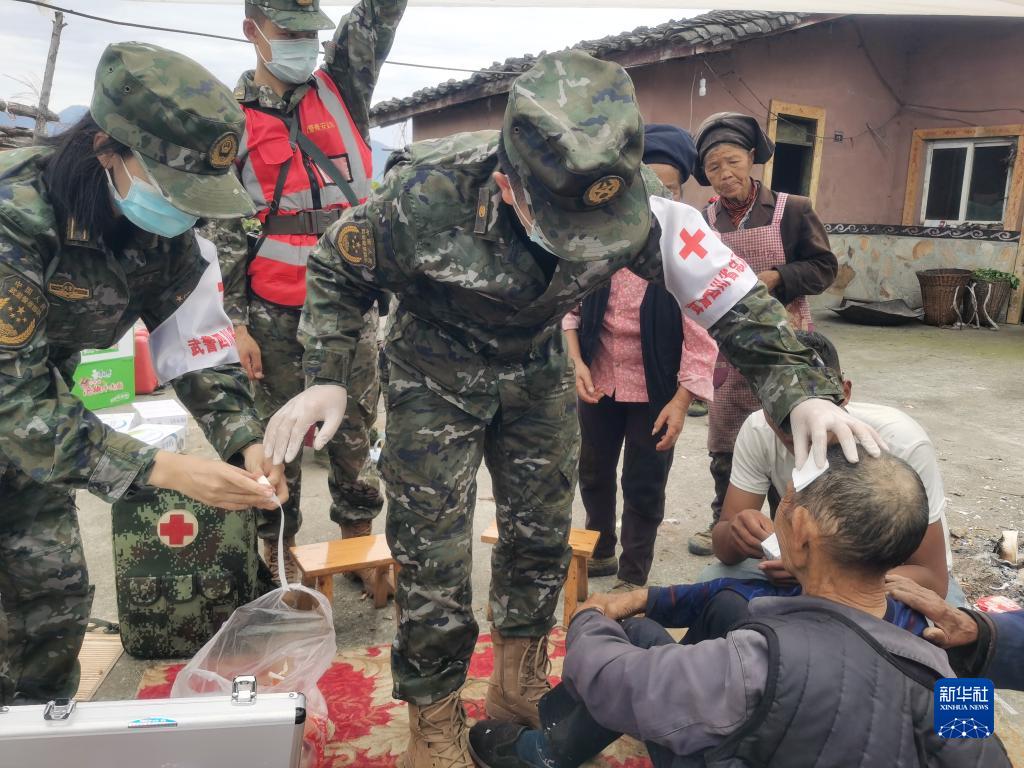 9月6日,武警四川總隊醫(yī)院醫(yī)療隊在瀘定縣磨西鎮(zhèn)救治傷員。新華社發(fā)(李華時 攝)