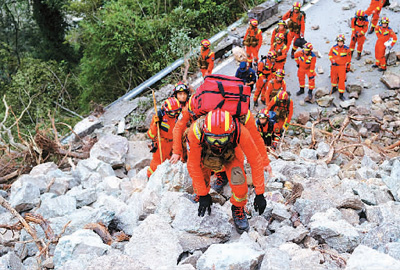 這4公里,基本沒有正常道路可走,他們走河道、爬山,踩在滿是石子的路上,全程必須又快又穩(wěn)。救援人員走了近一個(gè)小時(shí),才把傷員送上救護(hù)車上。他們不敢休息,返回后,繼續(xù)轉(zhuǎn)運(yùn)傷員,有的消防員跑了五六趟,卻還在堅(jiān)持。截至9月6日,青崗坪村300余名群眾均已安全轉(zhuǎn)移,其中包括29名重傷員。
