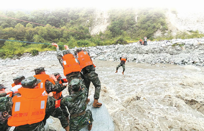 在震中瀘定縣磨西鎮(zhèn)磨子溝村,有部分傷員和群眾被滾滾急流困住。面對(duì)險(xiǎn)情,參與救援的一線特警隊(duì)員毫不猶豫,用身體和繩索搭起“生命通道”,迅速轉(zhuǎn)移被困群眾。[詳細(xì)] -