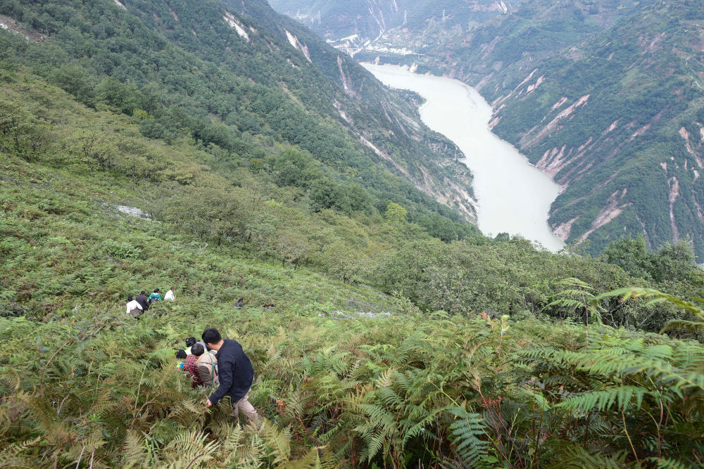 時(shí)間已經(jīng)到了下午3點(diǎn)半,我決定跟著十余個(gè)村民走下山,盡快下山整理照片發(fā)稿。下山路比上山路略好走一些,有時(shí)沿著尚未中斷的山間盤山公路行走,有時(shí)會(huì)經(jīng)過(guò)之前村民踩出的小路,有時(shí)只能自己開(kāi)路向前。兩個(gè)來(lái)小時(shí)之后,坐在返回得妥鎮(zhèn)的橡皮艇上,我懸著的心才終于落下。