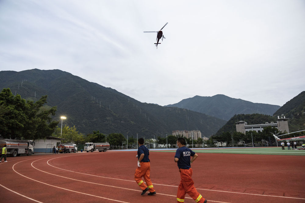 到達(dá)石棉縣后,我了解到有幾個(gè)偏遠(yuǎn)鄉(xiāng)鎮(zhèn)受災(zāi)較重,但是現(xiàn)在道路不通。我四處打聽(tīng)可以進(jìn)震中采訪的辦法,終于在縣委指揮部找到一名應(yīng)急管理部南方航空護(hù)林總站司機(jī),他們有直升機(jī)前往現(xiàn)場(chǎng)救援,我馬上前去聯(lián)系,終于在第二天,飛到大山中的“孤島”幸福村。