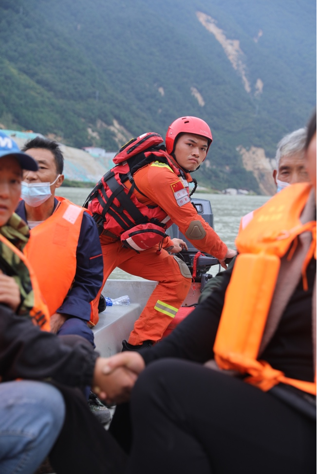 石棉縣王崗坪彝族藏族鄉(xiāng)幸福村緊鄰大崗山水庫(kù),有數(shù)百戶居民,9月5日的地震切斷了這里的道路、電力,水力、通訊,成為名副其實(shí)的“孤島”。但是,援助不會(huì)因?yàn)槁吠酒h(yuǎn)而缺席,消防救援隊(duì)伍乘沖鋒舟再翻山越嶺終于在6號(hào)到達(dá)該處村莊,快速穩(wěn)妥轉(zhuǎn)移被困受傷群眾,幫助村民在被埋的房屋找尋貴重物品,甚至幫村民轉(zhuǎn)運(yùn)養(yǎng)殖的豬。