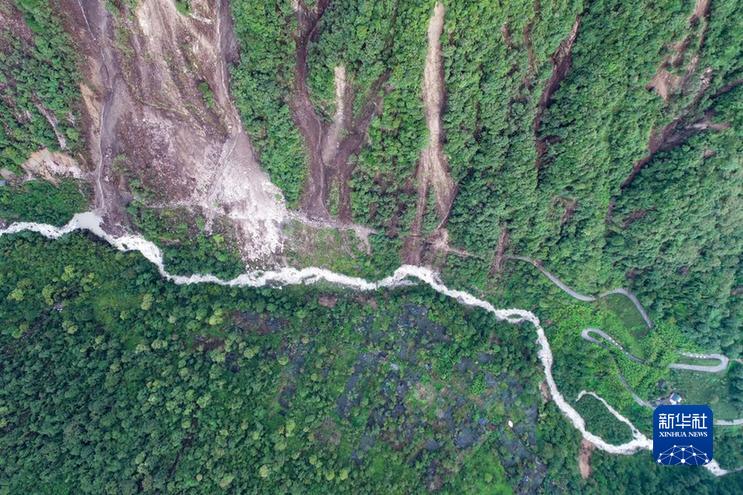 這是9月7日拍攝的海螺溝景區(qū)一號(hào)營地附近的崩塌災(zāi)害現(xiàn)場(右側(cè)部分)(無人機(jī)照片)。新華社發(fā)(四川省冶勘設(shè)計(jì)集團(tuán)有限公司供圖)