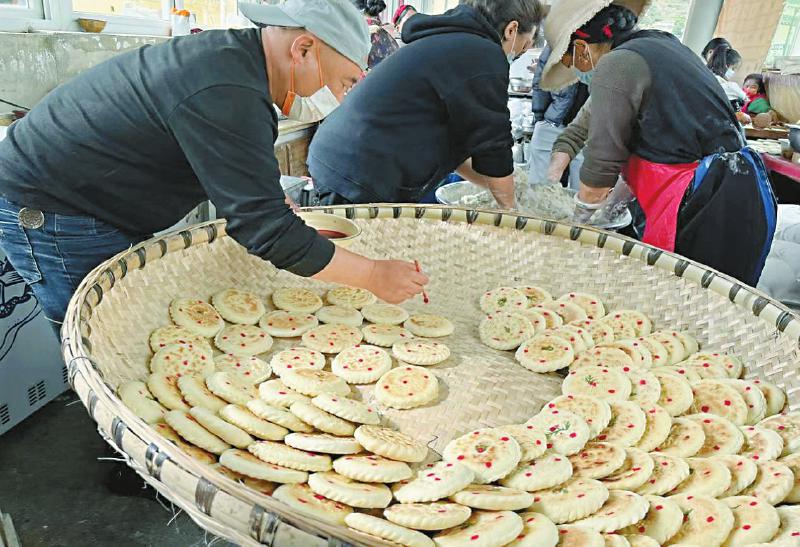 中秋節(jié)前,甘孜州道孚縣群眾及愛心企業(yè),自發(fā)組織制作當?shù)靥赜胁厥皆嘛灮x饃送到瀘定受災(zāi)群眾手中。